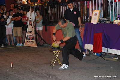 En aquest carrer, els divendres i dissabtes hi ha un mestre de Kung Fu que fa una exhibició al carrer. El seu show es caracteritza per barrejar l'humor (majoritàriament en xinès) amb les arts marcials. El número més espectacular és veure'l foradar un coco amb el dit index. Al principi del show va començar a preguntar als turistes la nacionalitat, fins que es va parar davant de l'Oriol i li va demanar de col·laborar en l'espectacle. Primer l'home li volia tirar una carta a l'ull (després d'observar com de forta la tirava en l'aire), i després li va fer aguantar un coco durant uns cinc minuts (després de deixar anar tot un rotllo per a que li compressin uns productes, que les MGM no van poder resistir-se!!).